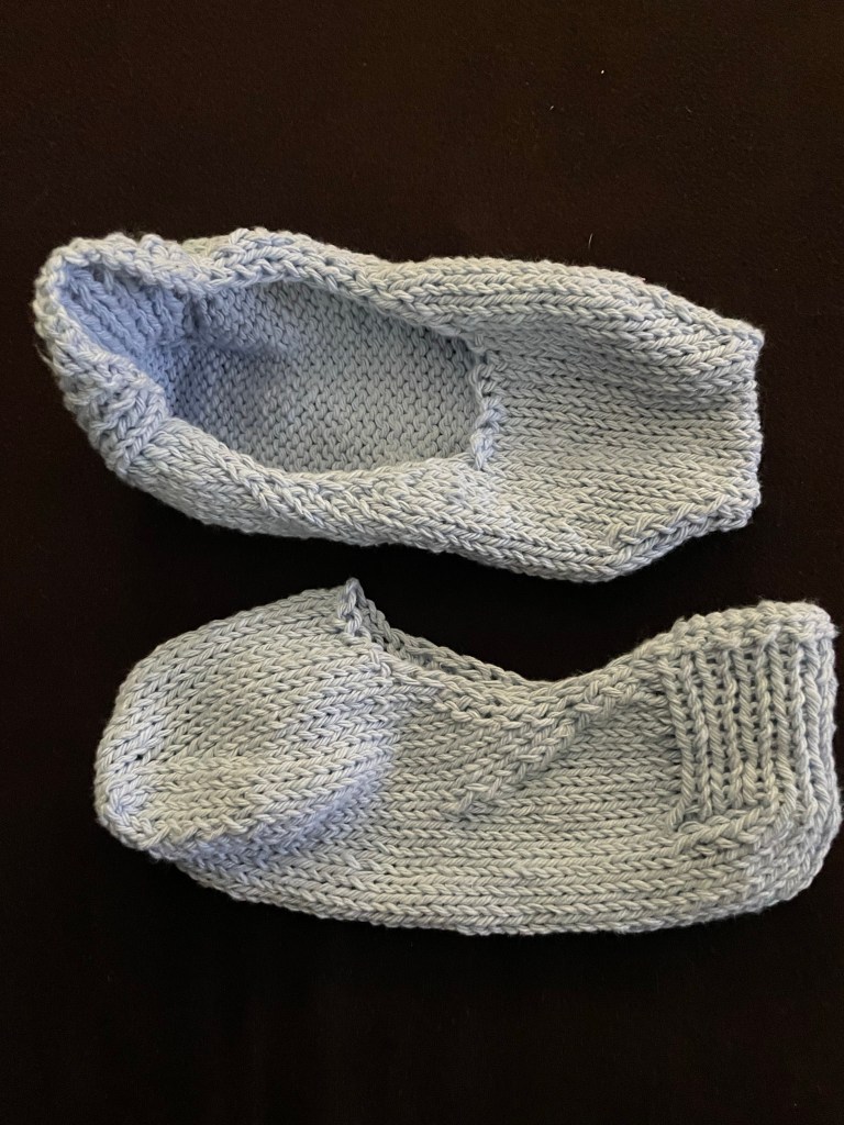 A couple of days ago I was looking for a new sock pattern to make. As always, I did find some new ones. But I also found a pattern for socks that look similar to the pics above. However, I didn’t particularly like the way the pattern was worked, so I came up with my own pattern for these slipper socks. Right now, it’s in notes form, but I’m thinking about writing it out in traditional pattern format. If you’re interested, please comment below and I’ll get it posted.